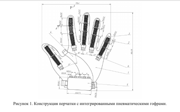 Роботизированная перчатка представляет собой конструкцию, способную выполнять заданные движения пальцев с заданным усилием и траекторией, имитируя естественные сгибания и разгибания.