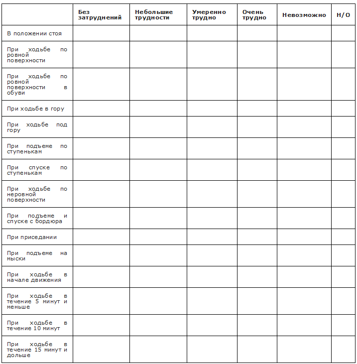 Приложение Г2. Вопросник функциональных возможностей стопы и голеностопного сустава
