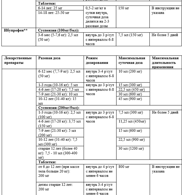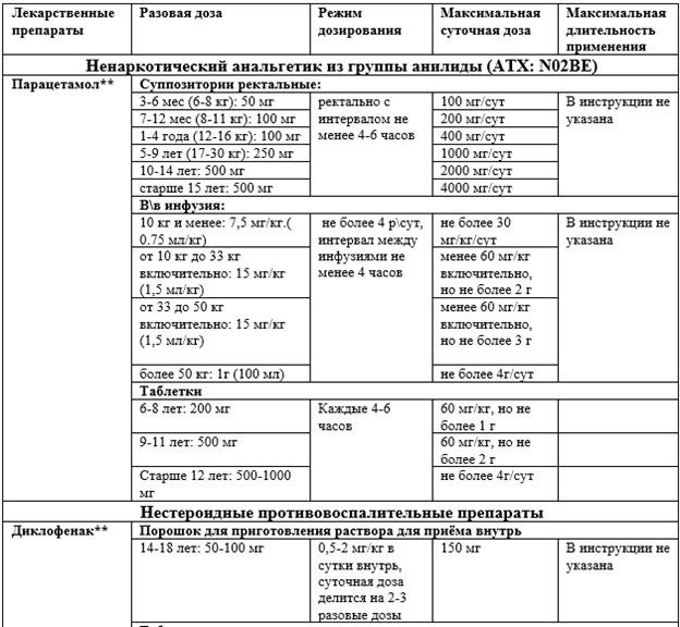Приложение А3.1 Режим дозирования обезболивающих препаратов для детей