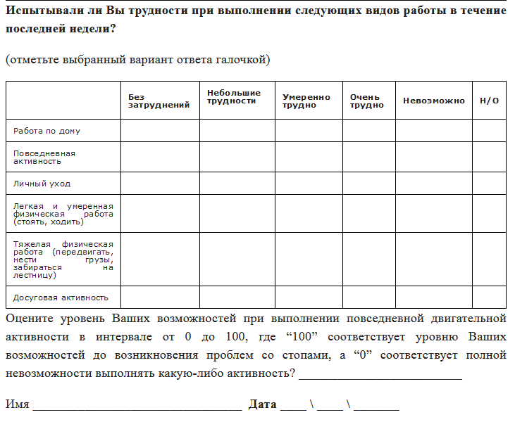 Вопросник функциональных возможностей стопы и голеностопного сустава