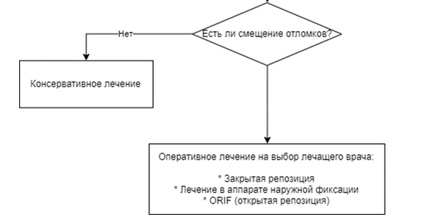 При 1 типе возможна малоинвазивная репозиция каждого фрагмента шилом без использования дистрактора.