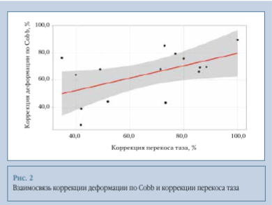 Взаимосвязь коррекции деформации по Cobb и коррекции перекоса таза