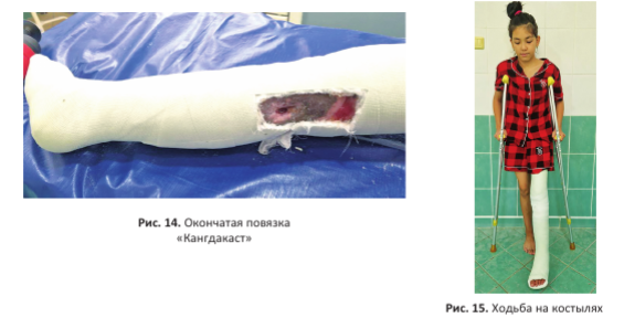 Сочетанные костно-сосудистые травмы нижней конечности при обширном размозжении тканей и нарушении кровообращения требуют строго индивидуального подхода к выбору хирургической тактики. Восстановительные операции при подобных повреждениях должны предусматривать широкое иссечение нежизнеспособных тканей, надёжный остеосинтез и восстановление адекватного кровотока. Однако, даже при соблюдении всех этих принципов, необходимо учитывать высокий риск развития гнойных осложнений в послеоперационном периоде и возможность аррозивного кровотечения. Несмотря на длительный процесс заживления подобных ран, положительным фактором является то, что скорость регенерации тканей, консолидации костей и реабилитационные возможности у детей значительно выше, чем у взрослых.