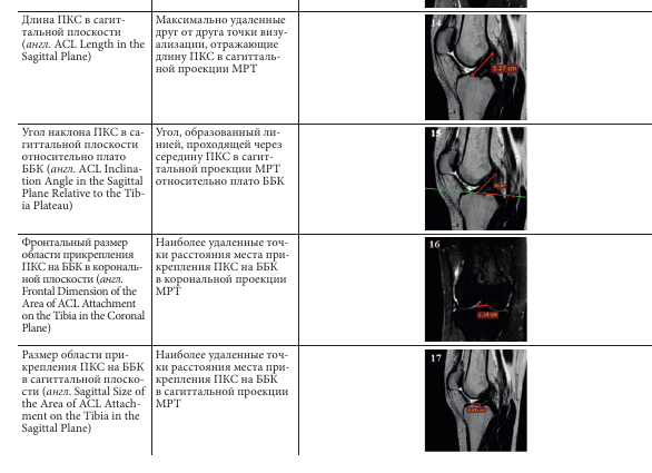 Дополнительные параметры могут быть использованы для построения многопараметрической модели анализа МРТ КС и смогут помочь при планировании пластики ПКС.