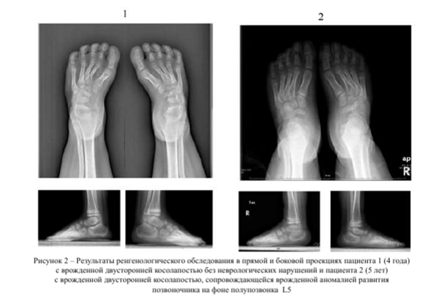 Врожденная косолапость стоп различного генеза сопровождается изменением функционального состояния нервно-мышечной системы, характеризующимся снижением двигательной функции мышц голеней и стоп и моторной проводимости соответствующих периферических нервов, а также признаками моторной недостаточности пояснично-крестцовых корешков СМ, выраженность которых доминирует у пациентов с врожденной аномалией развития поясничного отдела позвоночника.