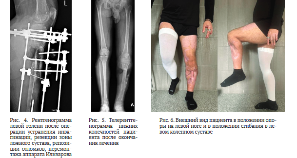 Общий срок лечения составил 553 суток, ИВФ — 43,7 сут./см, анатомический результат по шкале ASAMI — удовлетворительный, функциональный результат по шкале ASAMI — хороший.