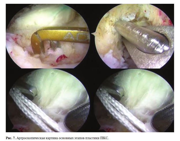 Реконструктивному этапу операции предшествовала диагностическая артроскопия. При выявлении в ходе этого этапа травматической патологии хрящевого покрова и/или менисков проводились соответствующие оперативные приемы.