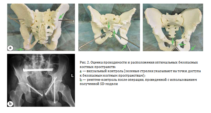 Цель исследования — оценка эффективности использования SD-технологий печати на этапах предоперационной подготовки и интраоперационной навигации в мини-инвазивной хирургии травм костей таза.