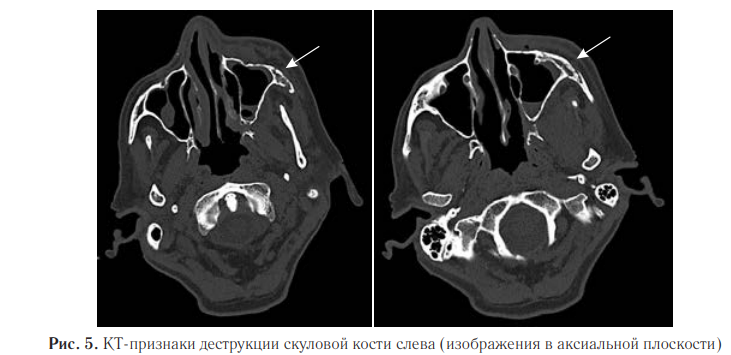 Деструктивные изменения были обнаружены и в левой скуловой кости (рис. 5).
